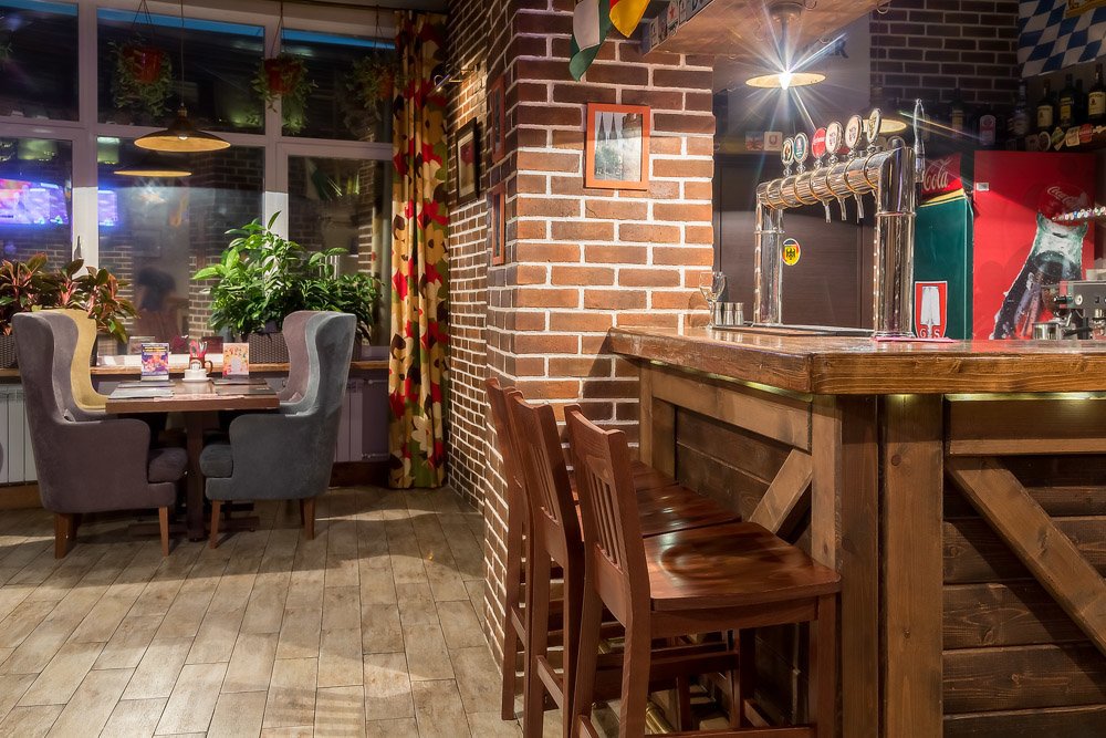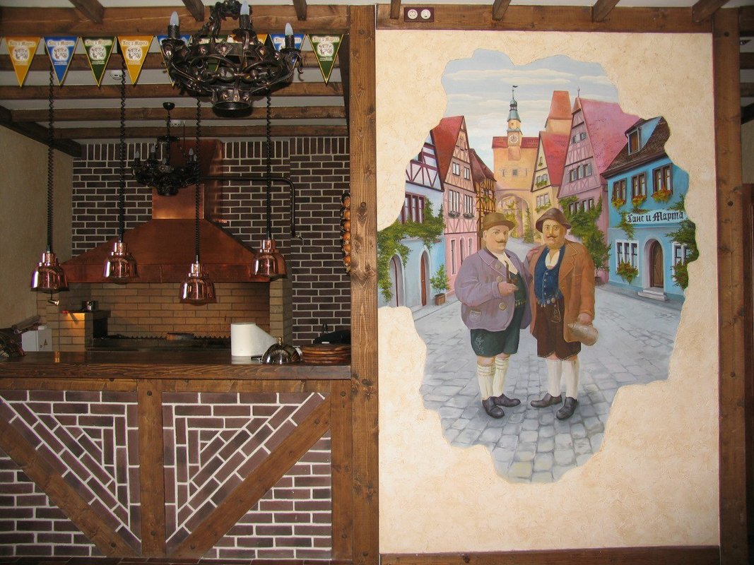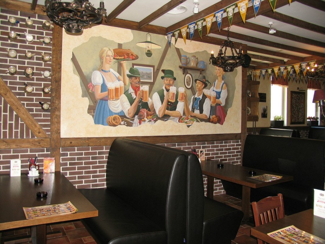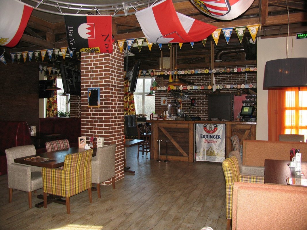 Много дерева, кирпича, натуральных материалов. Хорошая баварская кухня. Подборка пива. Персонал контактный. С 12 до 16 подают приличные бизнес-ланчи. Ценник чуть выше среднего по району. Но это компенсируется размером порций, да и вкусом тоже.