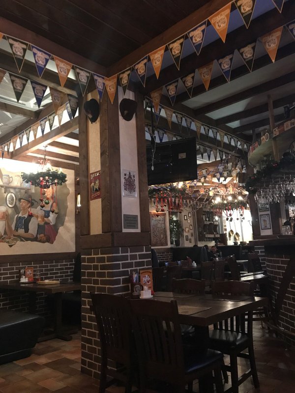 Были с супругой на хэллоуин, хостес нас встретили, очень приятно, посадили за заказанный столик, и на этом все приятное закончилось... Официант один на этаж, взял заказ у всех столиков одновременно, т.е. очень долго ждали свой заказ, заказали фирменное разливное пиво "светлое", пиво просто не вкусное, баварские колбаски какие то засушенные, официант принес закуску к пиву и горячее все сразу вместе, разложил все на столе и на этом обслуживание закончилось... больше официант к нам не подходил... сама обстановка на втором этаже, унылая и скучная...((( цены завышены, за эти деньги можно посидеть в более приятном месте... посидели чуть больше часа и поехали в другое заведение!