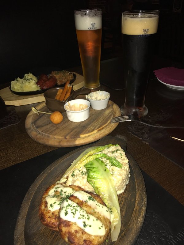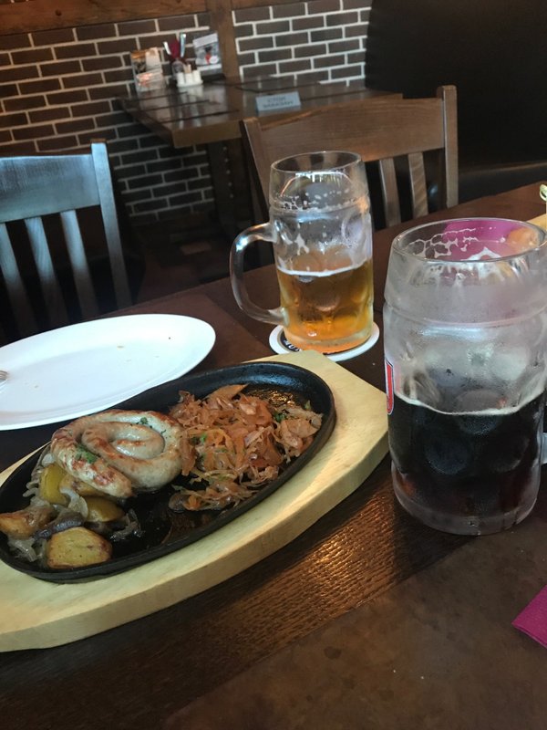 За соседним столом сидела пара зрелых немцев)) Что уже говорит о многом)) Паб пользуется спросом и у иностранцев. Рыба на мангале - пальчики оближешь. Фруктовое пиво прекрасно!